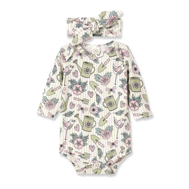 Tesa Babe - Garden Bloom Bamboo Bodysuit & Headband: 6-12M